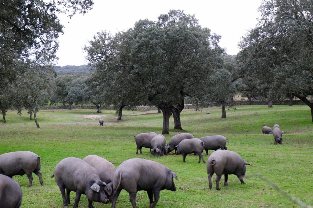 Para comprender como se puede hacer el mejor Jamón de bellota Ibérico pongo rumbo a la primera montanera del año, viajo a la Comarca de Los Pedroches donde Monte Nevado selecciona las mejores dehesas buscando fruto de sabor dulce y abundancia de hierba y agua para que sus cerdos disfruten de un gran espacio en libertad comiendo a placer.